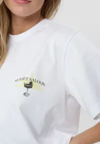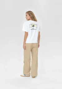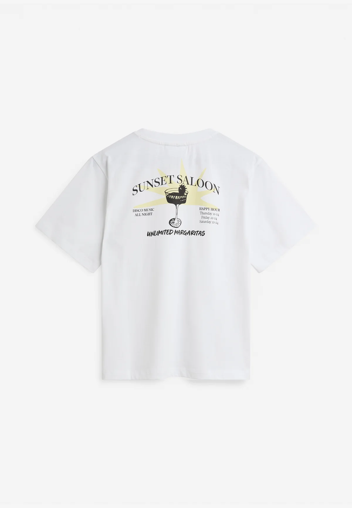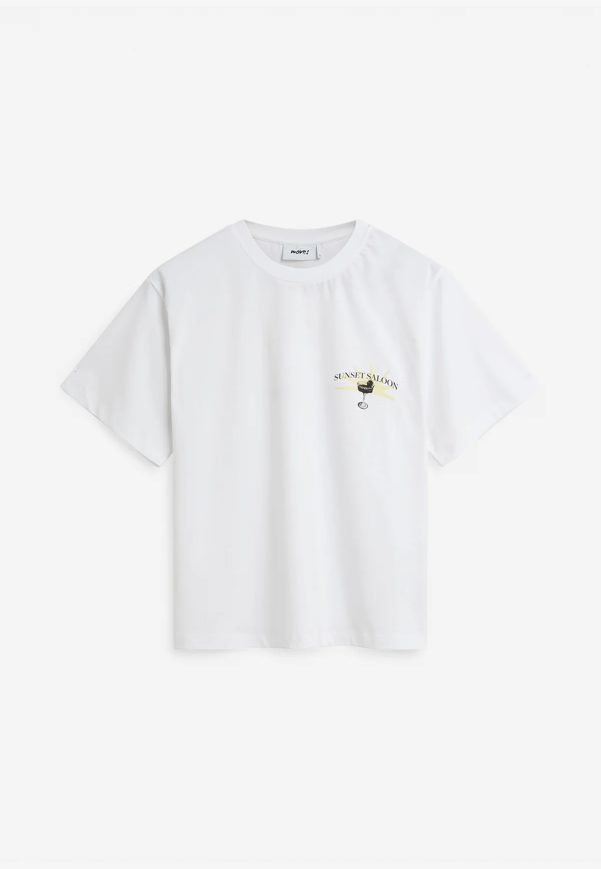 T-skjorte med trykk på bryst & rygg fra Moves.