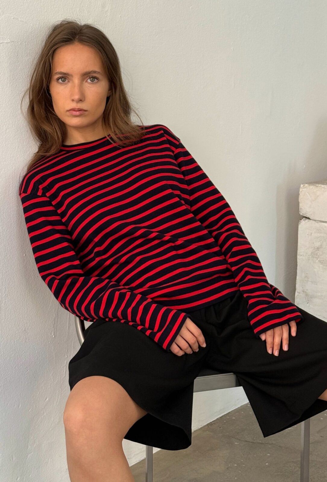Oversize o-neck med striper fra Boii.