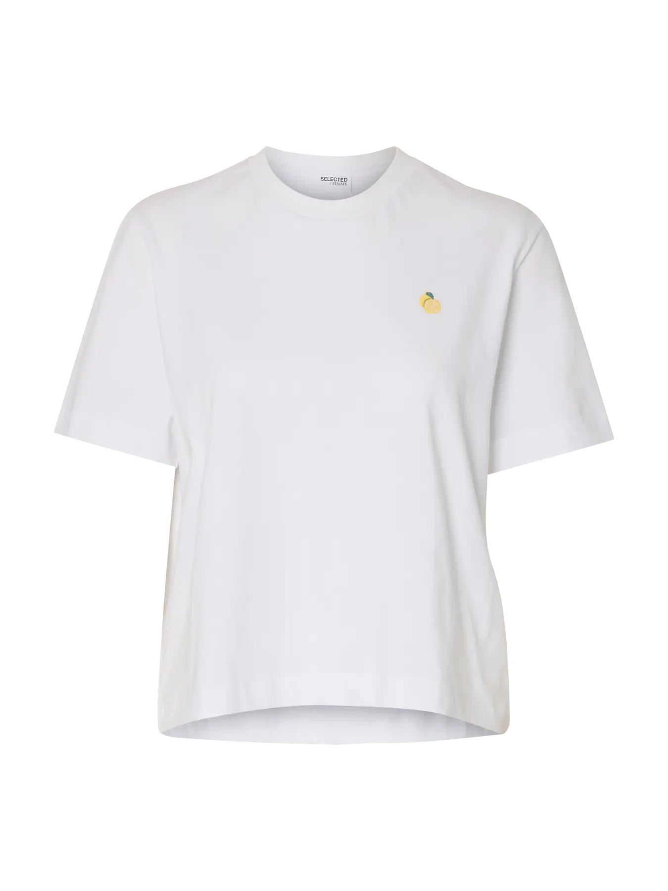 Farge "White" hvit med brodert sitron.