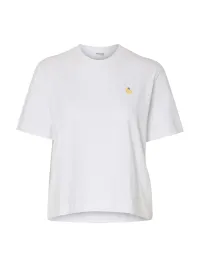 Enkel t-skjorte fra Selected Femme. Rett, noe kortere modell. Kraftig i stoffet.