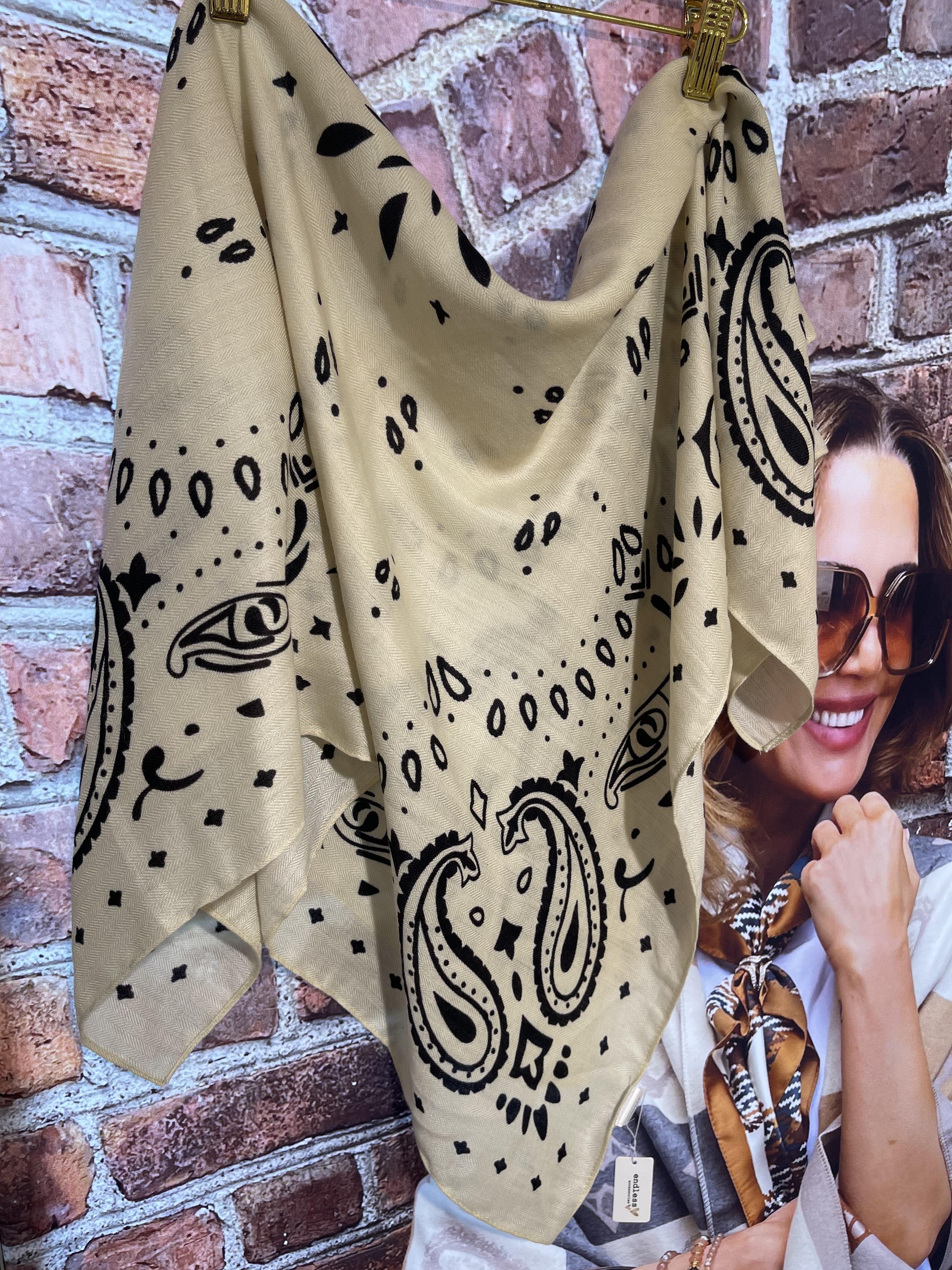 Stort kvadratisk skjerf fra Endless. Fint i halsen, over skuldrene eller i midjen/på jeansen.