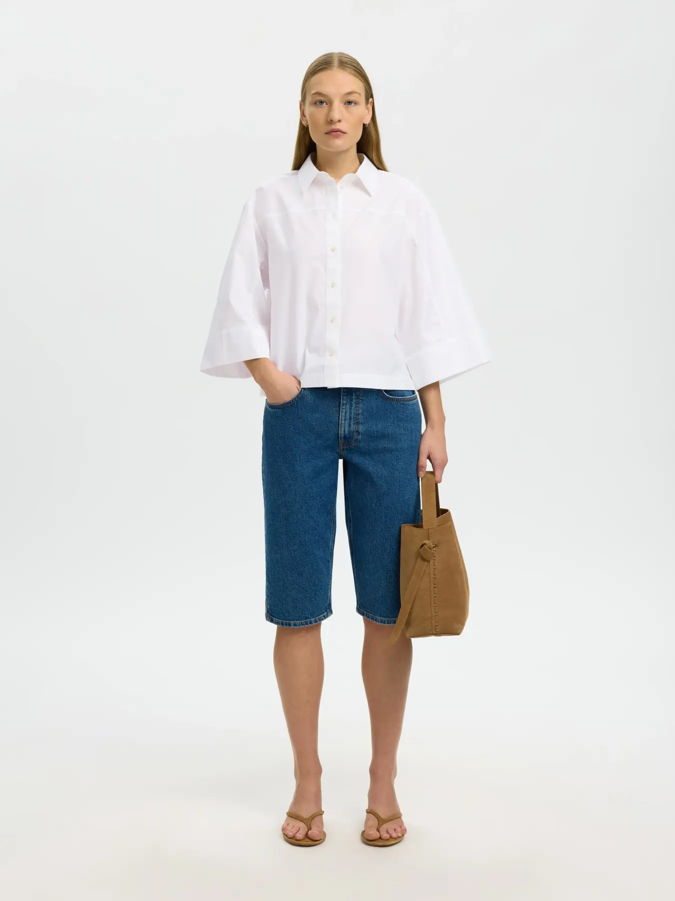 Kort & vid skjorte fra Selected Femme. 3/4-erm.