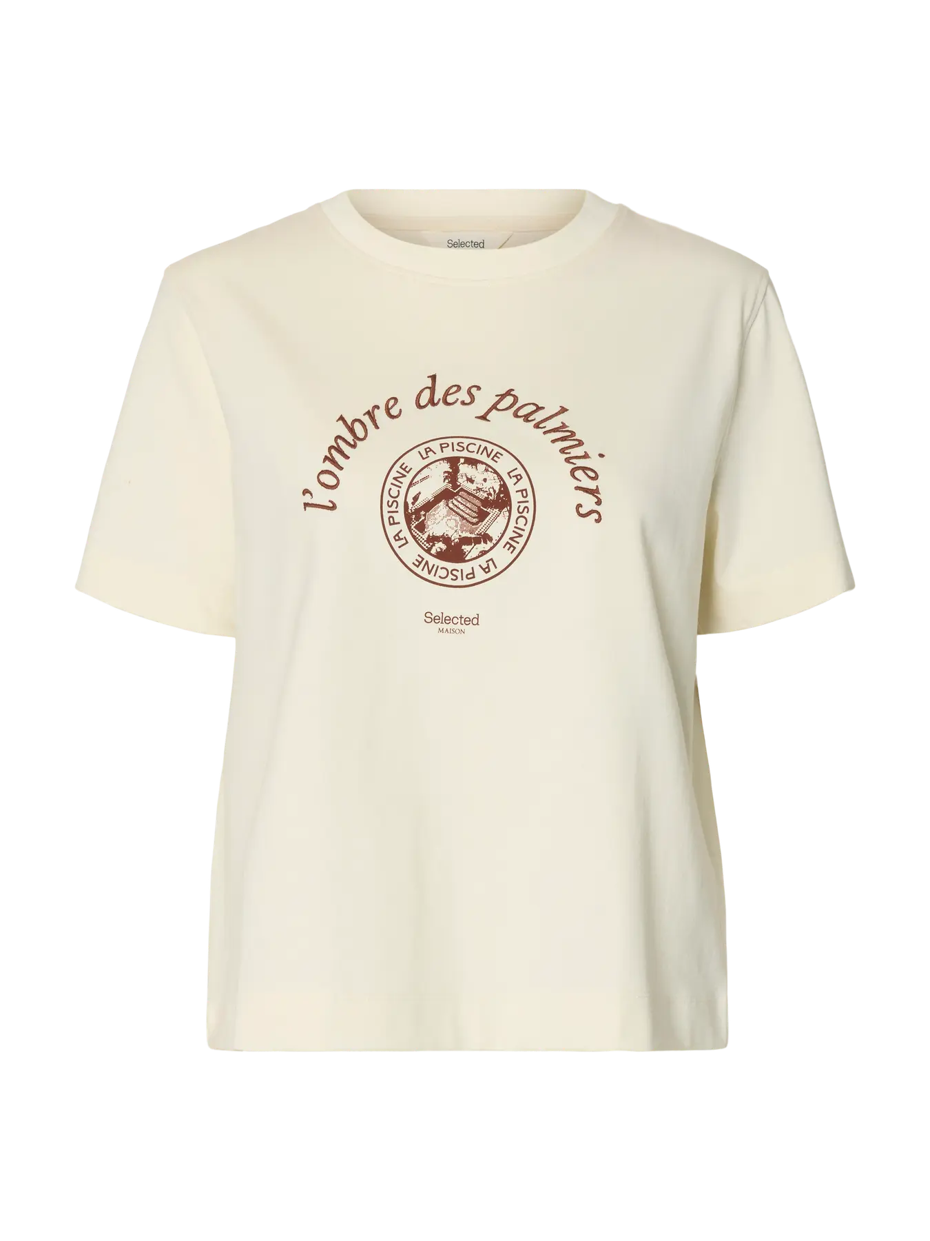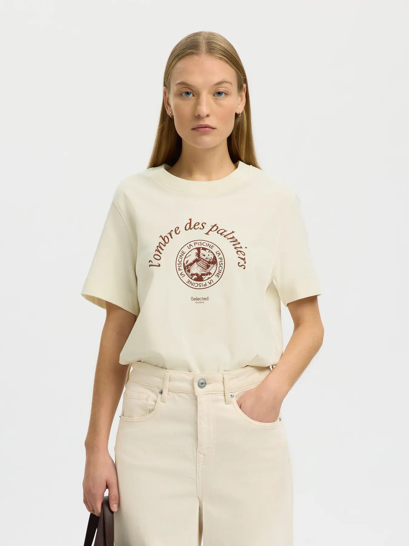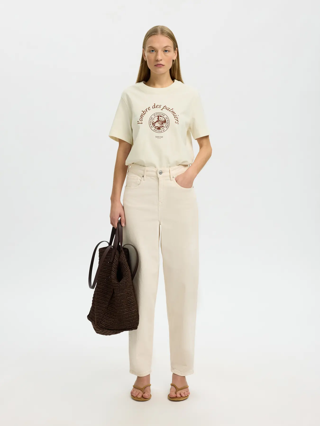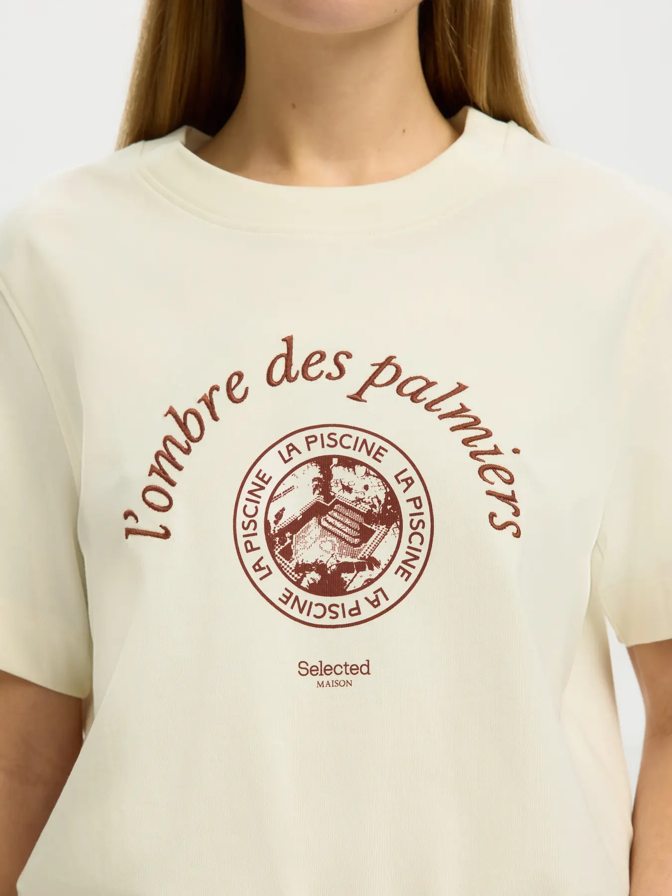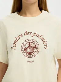 T-skjorte med broderi fra Selected. Rett, bred modell. Kraftig i stoffet.