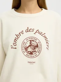 Sweat med broderi fra Selected. Rett, bred modell. Mykt college-stoff.
