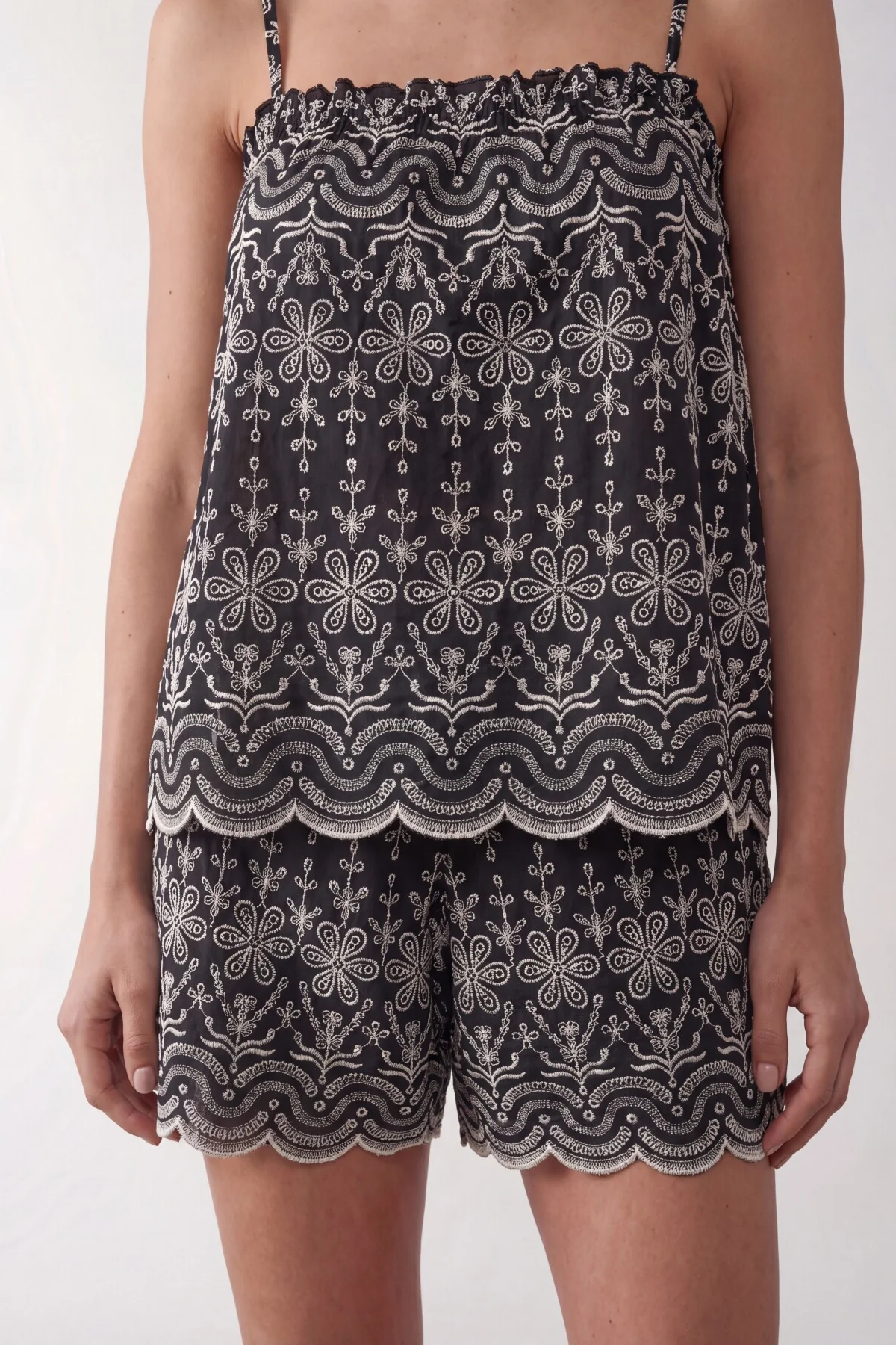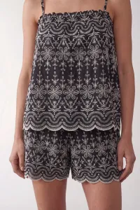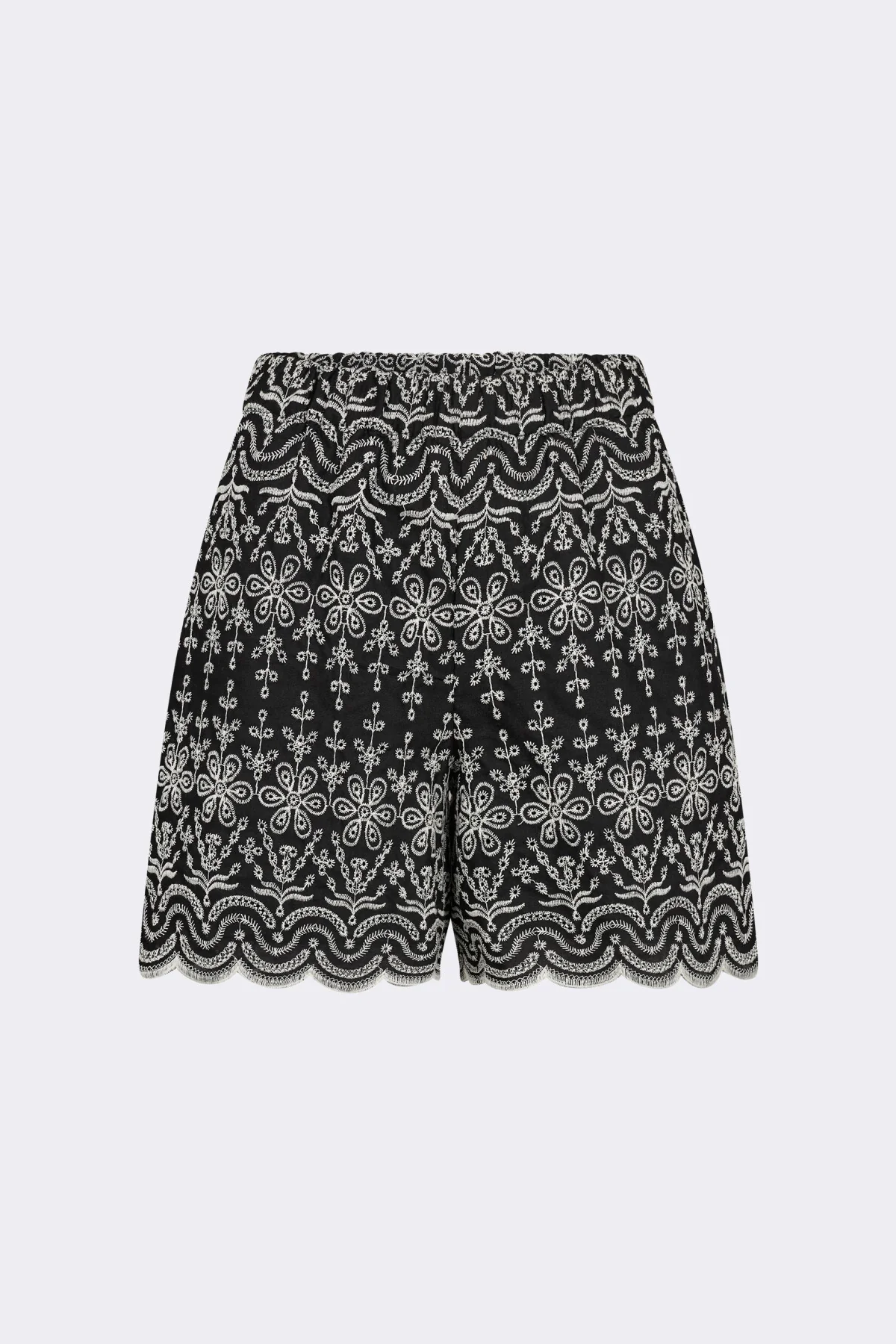 Shorts med broderi fra Levete room. Strikk i livet. Fin i sett med Rosalina Top.