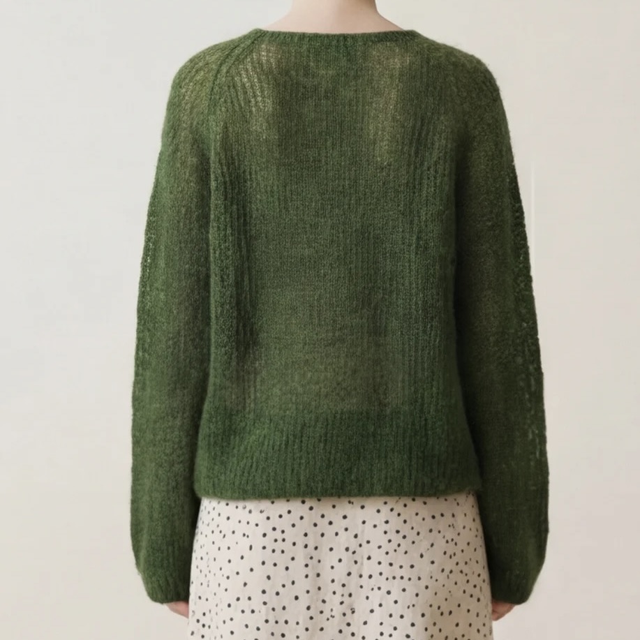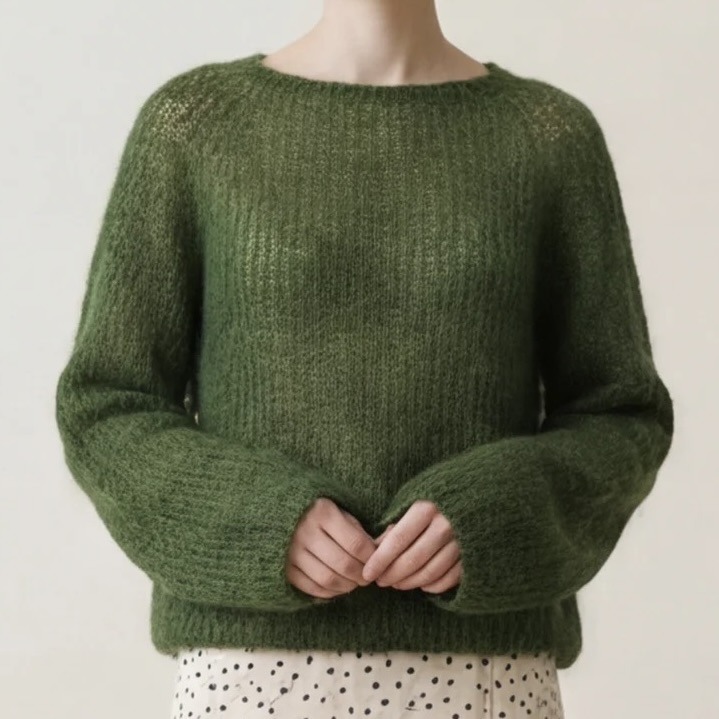 68% mohair, 28% resirkulert polyamid & 5% ull.