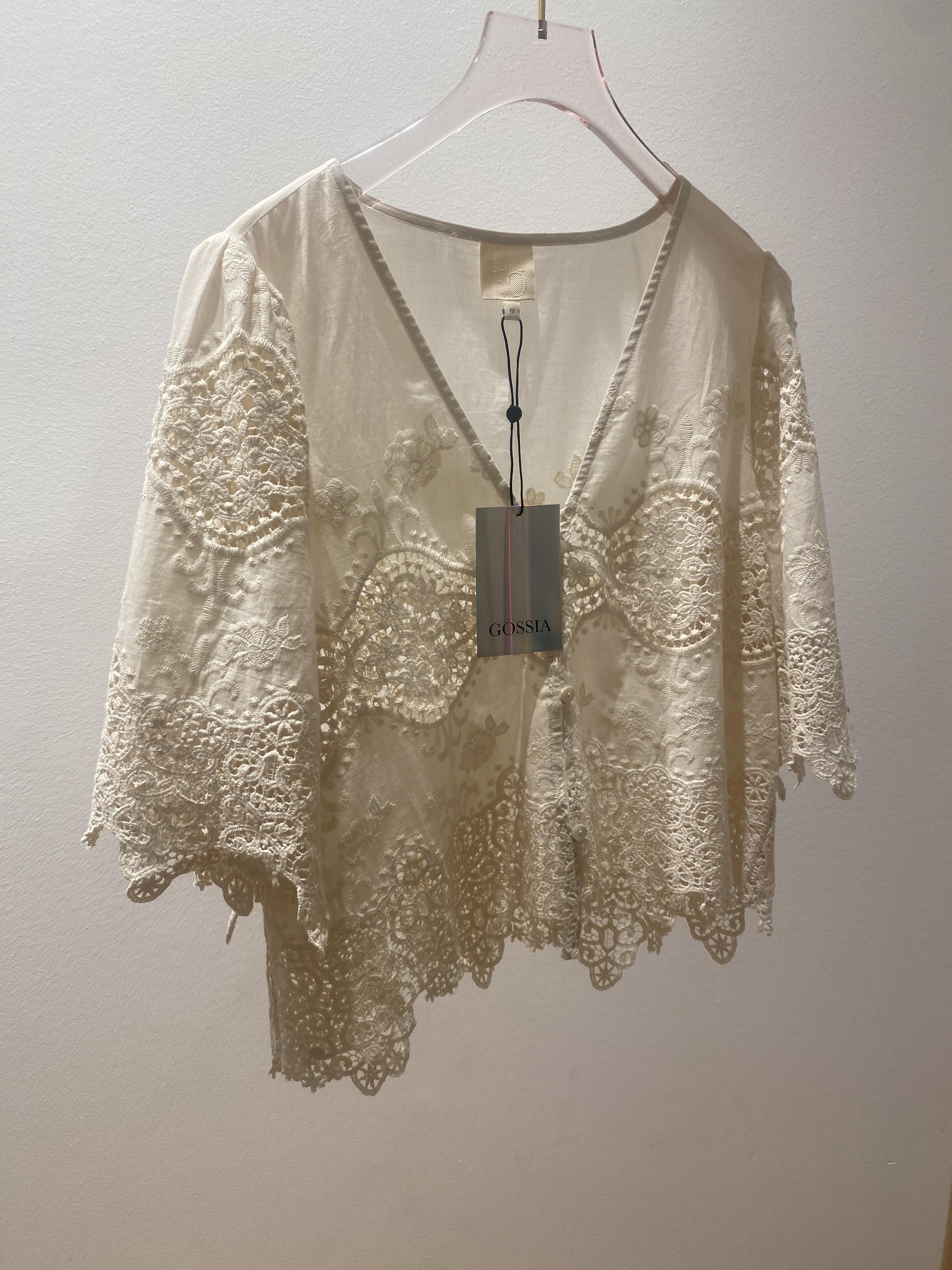 Nydelig bluse med hekle-blonder fra danske Gossia. Noe transparent.