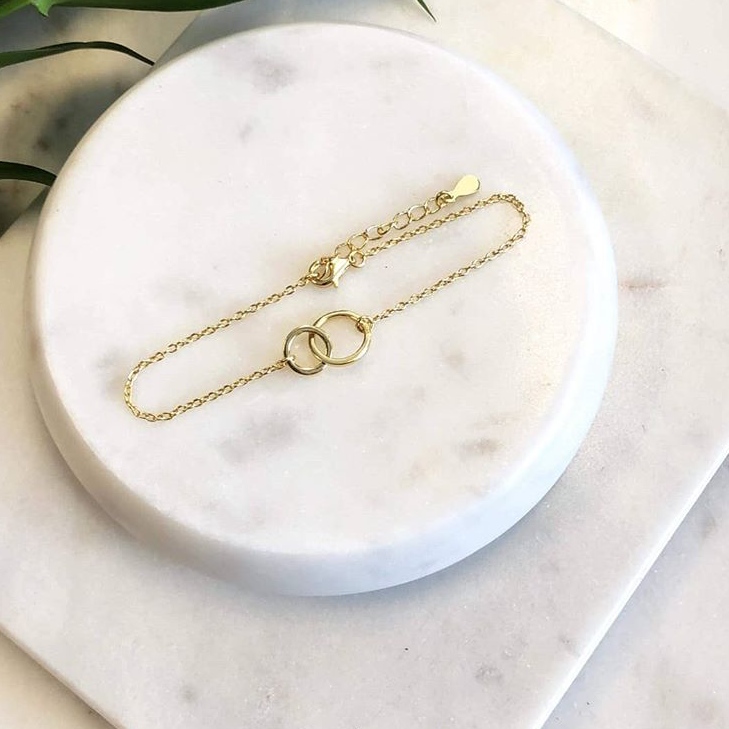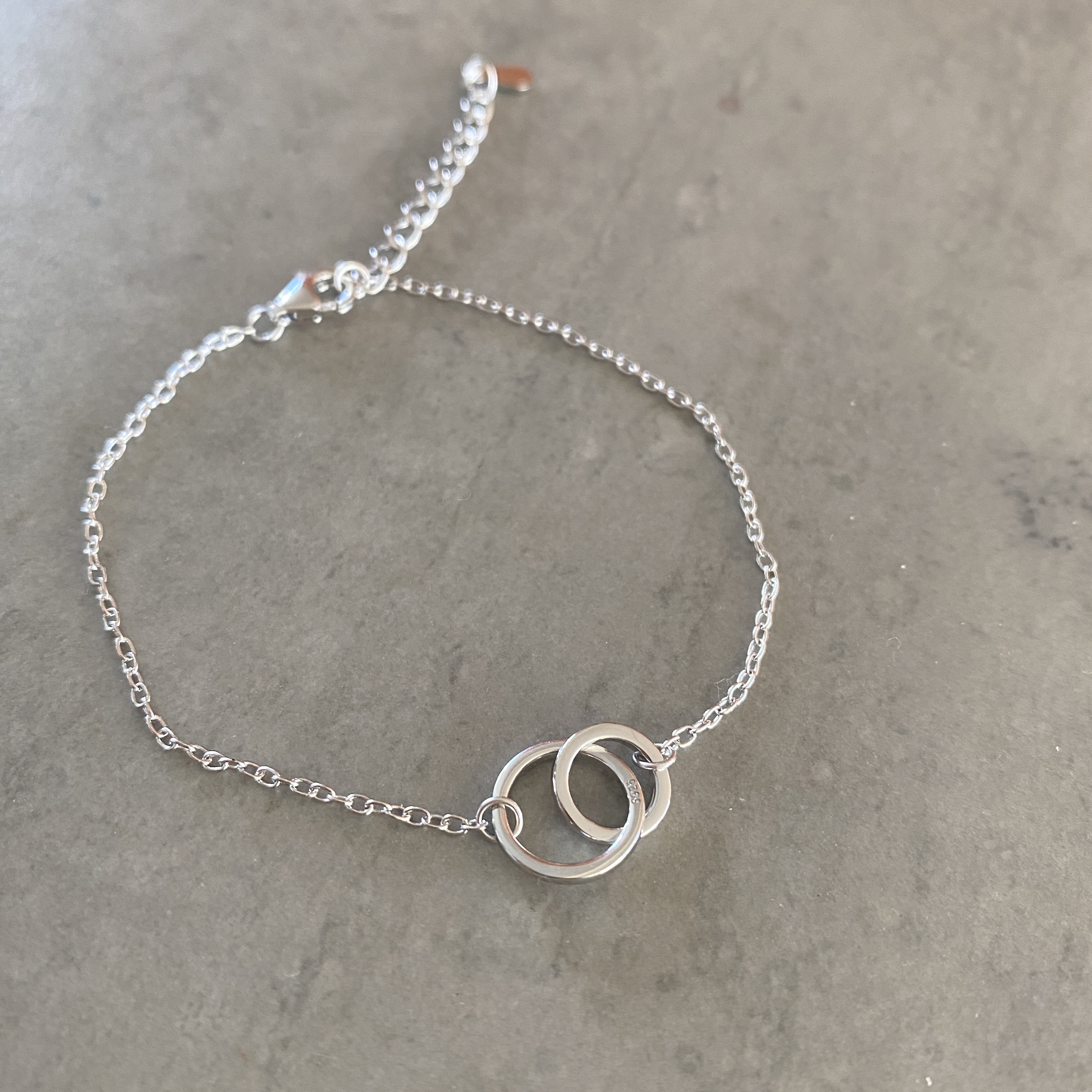 Armbånd med doble, små sirkler inni hverandre. Fint alene eller med andre enkle smykker.