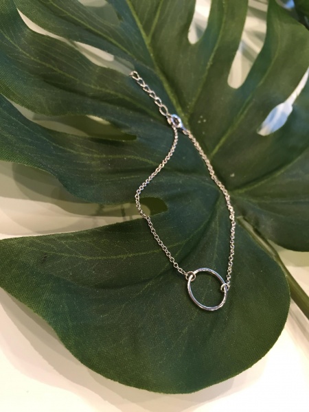 Sølvarmbånd med liten sirkel fra Khione. Fint alene eller med andre enkle smykker.