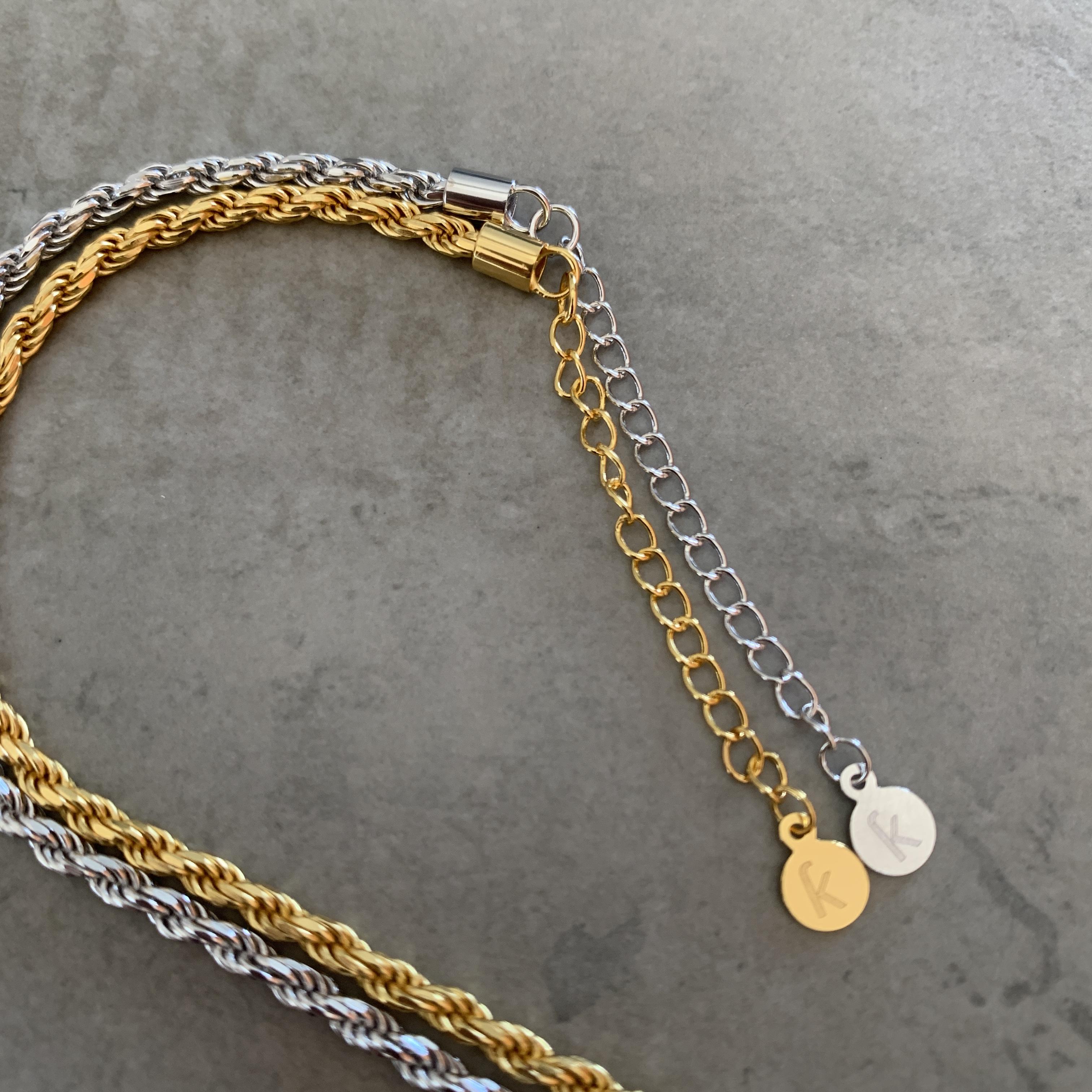 Kraftig armbånd i rullet lenke fra Khione. Fint alene eller med andre enkle smykker.