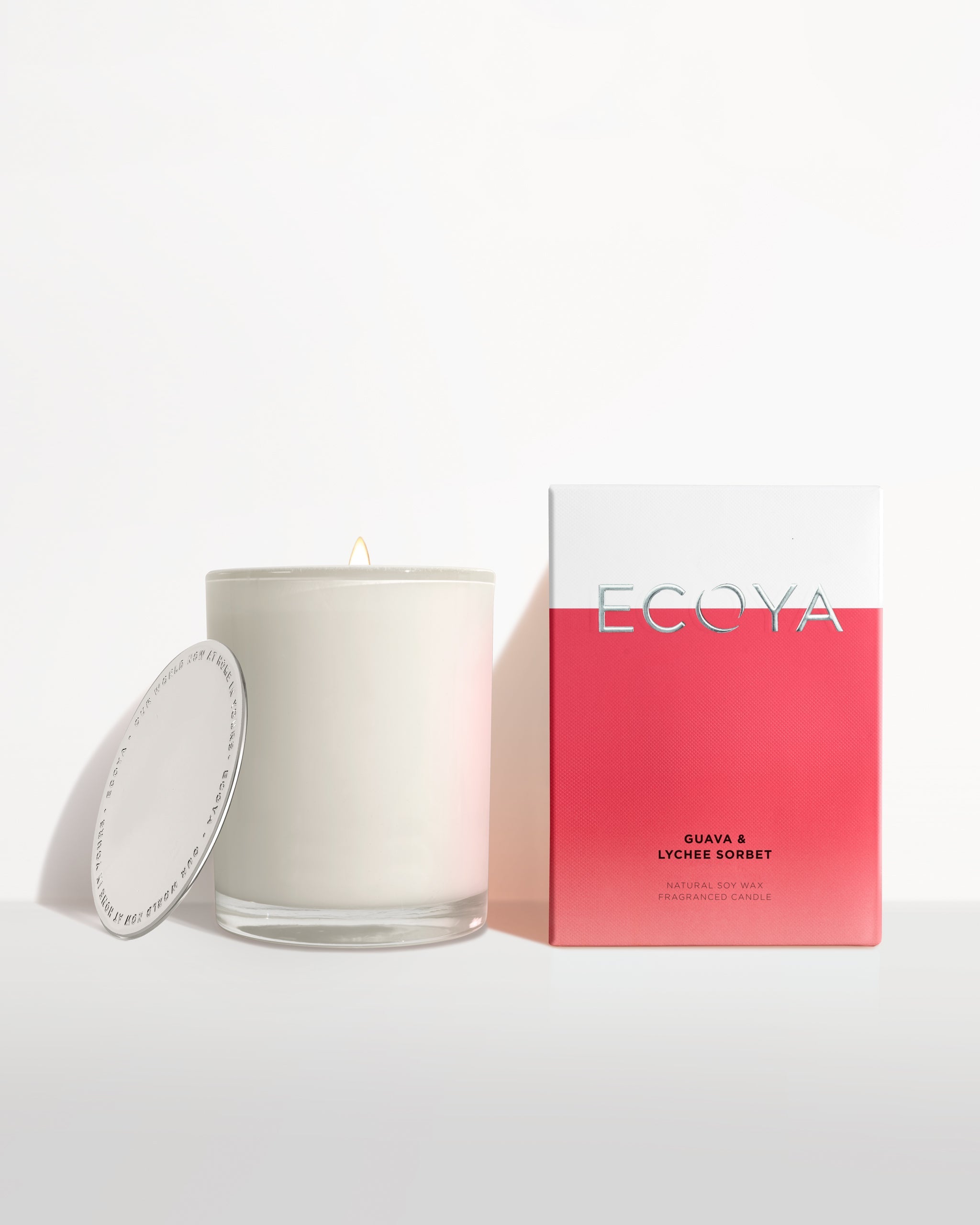 Duftlys fra ECOYA. En fyldig fruktig duft med tropiske lag av guava nektar, litchi og en cocktail av bær.