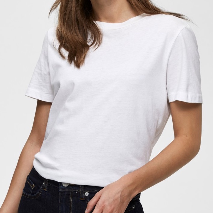 Enkel, klassisk t-skjorte med fra Selected Femme. Perfekt, halvløs, rett modell.