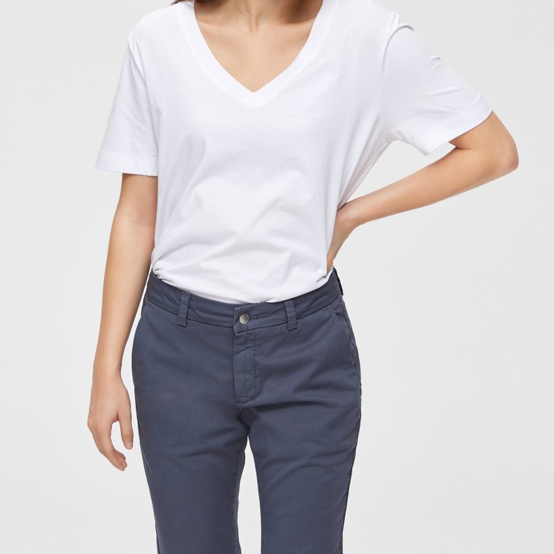 Enkel, klassisk t-skjorte med V- hals. Rett, halvløs modell.