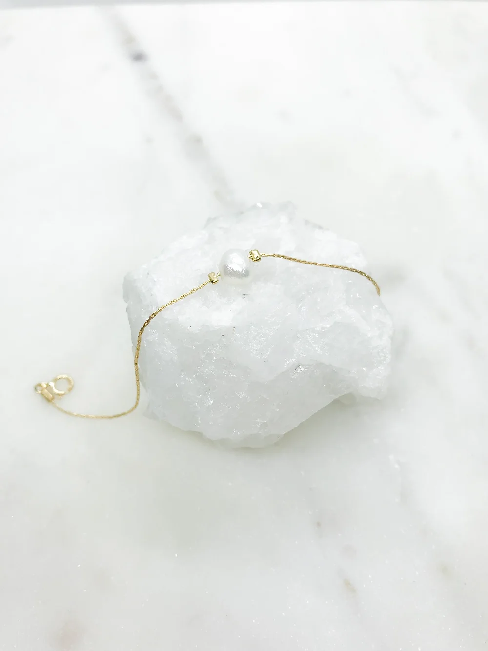 Gullforgylt messing & ferskvannsperle.