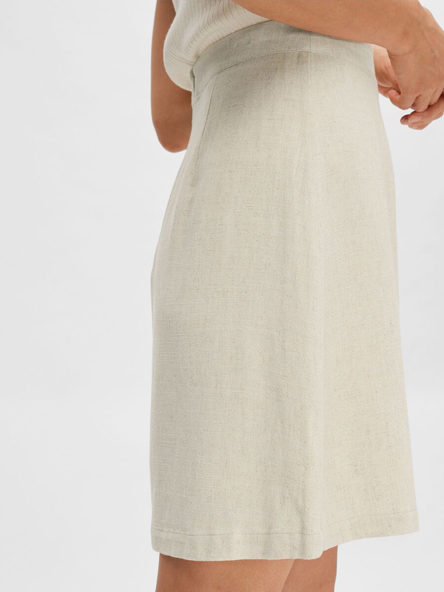 Skjørt i linblanding fra Selected Femme. Skjult glidelås bak. Fint i sett med Viva Linen Skirt.