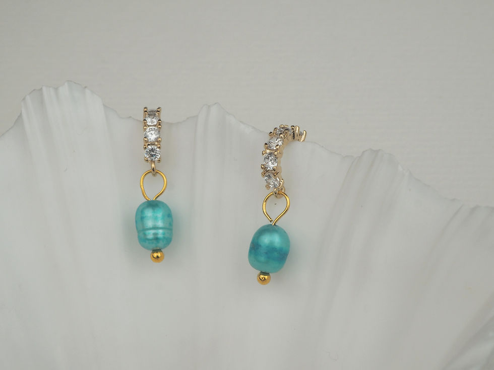 Ørering med cirkoner & turkis ferskvannsperle fra Wahl-West. Ett par koster 560kr, velg 2stk.