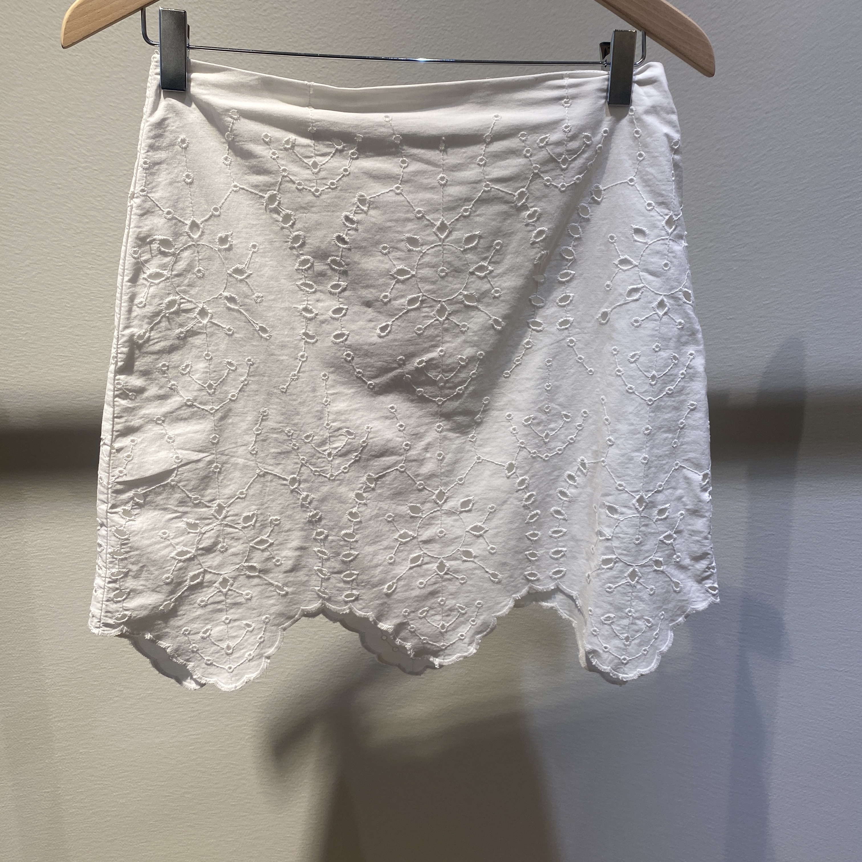 Bomullsskjørt med engelsk blonde fra Selected Femme. A-fassong. Fôret.
